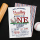 Plain white envelopes are included with paper invitations and will come to fit the invitation size you select. If you don’t need the envelopes, you may choose to not receive them by selecting the dropdown below "Envelopes" and choosing "None." If you’d like to have a design on your envelopes, you can browse all of these available envelopes to find the design that complements your Hitting The Big One Baseball 1st Birthday Invitation.