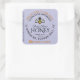 Personalize this honey label with your apiary name, street or owner name & location, net weight. "Pure Raw" is written in a script font and "Honey" in an elegant capitalized font beneath a catchy-looking "windowpane" honeybee. Facebook handle and infant warning.