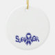 Lightweight, smooth, pure white ornament with nice sheen. Perfect size to be seen from across the room ... and to attract closer inspection! Price was great for ordering enough for the whole family! Clear, bold black design just as requested. Matches the order exactly. Just so nice!