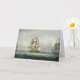 Very nice, heavy cardstock. Smooth writing surface, sturdy envelopes. no personalization but the transfer of the image was fantastic. Beautiful blues, greens and greys in various shades and levels of intensity really bring the artwork to life. You can almost hear the waves lapping the ships!