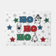 Ho-Ho-Ho Christmas design with snowflakes, snowman, Christmas tree, reindeer and colorful stars decoration on white background