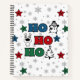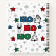 Ho-Ho-Ho Christmas design with snowflakes, snowman, Christmas tree, reindeer and colorful stars decoration on white background