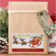 Whimsical, Santa Christmas personalized holiday stickers- Reads 'Ho Ho Ho!' at the top in faux gold foil, handwritten look lettering. At the bottom is your personalized family's name in matching gold script. Has cute Santa Claus cartoon with his reindeer and sleigh with gray background. Cranberry red border at the bottom, which may be changed to any color you choose. Fun Christmas labels for a cute, personalized touch for Christmas envelopes and shipping Christmas holiday gifts. We have many more holiday personalized stickers and personalized Christmas labels in our Zazzle.com/angela65 shop.