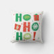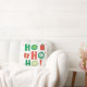 This holidays design features the text "Ho Ho Ho" in modern red and green typography accented with presents and dots on a white background.