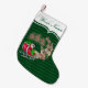 The Ho Ho Ho Santa Sleigh Reindeer Personalized small Christmas stocking brings the timeless magic of Christmas to life, enchanting both kids and adults with its nostalgic charm. Featuring Santa Claus, or St. Nick, in his iconic sleigh pulled by reindeer, this design evokes the wonder of Christmas Eve. The words "Ho Ho Ho" add a playful and cheerful touch, while the green-on-green stripe pattern provides a classic and elegant backdrop. Perfect for personalization, this stocking becomes a treasured keepsake, reminding everyone of the joy and traditions of the season. Its heartwarming design captures the essence of Santy Claus and the spirit of the holidays, making it a delightful addition to any festive celebration.