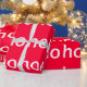 White ho-ho-ho's over a red background on this delightful wrapping paper will brighten anyone's holiday!