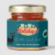 A fun retro design featuring midcentury modern elements with a "Ho Ho Holidays" billboard and two black cats on a dark teal background. Personalize the honey jars with your own message and your family name(s). These honey jars are the perfect little thank you gift for your Christmas party hosts, neighbours, pet-sitters, or friends and family members.
