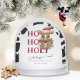 A funny, farm-themed holiday greeting featuring a cute cow wearing a Santa hat saying "ho ho holy cow it's Christmas again" on a black and white cowhide pattern. This snowglobe makes a jolly and festive Christmas gift for your family and friends. Personalize it with your name(s) and year. It'll make a lovely keepsake for years to come.