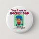 A cartoon hockey player with a stick and puck and text that reads "Yes I am a Hockey Dad" on Hockey Dad T-shirts, hoodies, sweatshirts, mugs, cards, stickers, tote bags, and other Hockey Dad apparel and gifts.
