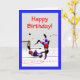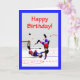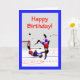 A birthday card with my original digital artwork of two hockey players in various stages of tripping and falling, for hockey fans and players. Text says "Happy Birthday!"
