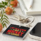 Life is a Game But Hockey Is Serious red and gold text hockey keychain.