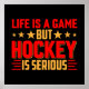 Life is a Game But Hockey Is Serious red and gold text hockey poster.