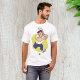 This design is a hockey man. The man is holding a hockey stick about to hit a ball. This hockey man design looks great on this Mens T-Shirt