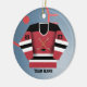 Customize this Hockey Player Jersey Ornament with your number and team name on front and your name and number on back. Makes a great gift for your favorite hockey player or also makes a great team gift. Great for high school and intramural hockey league gifts!