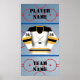 Poster featuring a hockey jersey above a replica ice rink with crossed hockey sticks and puck available in a wide variety of team color combinations. Customize with your player's name, number and team name. Makes a great gift for hockey players, hockey coaches and hockey fans as well as hockey fantasy league players.