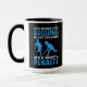 Hockey Player Penalty mug with white and blue text on a black background reads I'm Not Arguing I'm Just Explaining Why It Wasn't a Penalty! Hockey humor mug, sure to be a hit with any hockey player also features blue silhouette hockey players.