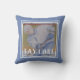 Hockey Player Throw Pillow that you can customize - Wearing a white helmet, white and blue uniform. Hockey stick in hand ready to score the winning goal! - great for Sports Fans, for gift giving, Celebrating, Momentos, or for sharing that Team Spirit with your fellow colleagues - Originally Painted by the designer