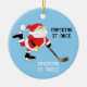 Hockey Santa Checking It Once Checking It Twice Ceramic Ornament