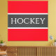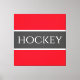 Classy strong bold white font inside a highlighted wide navy stripe on a bright red background with "HOCKEY" spelled center ice. Make It Your Own: Both the stripe color and the background color of this design can be customized/changed by editing the design. The text is optional and can be personalized.