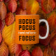 This funny Halloween mug features an orange background and the phrase "Hocus Pocus I need coffee to Focus" in black and white. Makes a fun gift for the coffee / Halloween lover in your life (or for yourself!).
