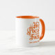 "Hocus pocus, I need wine to focus (or strong coffee)" saying printed in orange on both sides of a coffee cup, fun for Halloween for women or men.