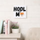 This wall clock features the words "Hodl Me" in a unique style print font with black letters with the face of a Shiba Inu dog in the place of the E in this cryptocurrency style and theme. This clock is made for any wall and printed with a AcryliPrint®HD process measures 10.75"x10.75" and made from grade-A acrylic. Battery operated uses one AA battery for Indoor use only, not recommended for outdoor use.