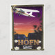 Höfn Iceland Flight poster of the icelandic region featuring a small prop plane flying low and a backpack bag with the Icelandic National flag.