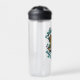 The bottle looks even better in real life. The ice cubes I put in lasts all day! I have my bottle with me all the time. It's summer and having something cold to drink feels amazing. With this bottle I always have something super cold. I have only tried the hot drink once and it lasted a long time as well. The color blue is a navy blue and the white printed on it is vibrant. It printed perfectly. I love my personalized smile water bottle.