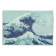 This is a drawing of blue, cyan and aquamarine extreme sea waves with foam and spray, based on the work of Katsushiki Hokusai (1760-1849).
