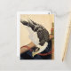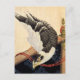 Hokusai Hawk postcard. Ukiyo-e animal painting from Edo period Japan. Katsushika Hokusai mastered multiple genres of Japanese painting and print making, including animal portraits. Hawk on a Ceremonial Stand depicts a regal black and white hawk crouching on a wooden ceremonial stand with gold trim and a red leather leash. The animal leans down and gazes at the viewer with its sharp black eye. A beautiful gift for fans of Hokusai, Ukiyo-e, Japanese art, and birds of prey.
