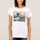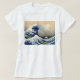 Hokusai The Great Wave T-shirt. Japanese woodblock print from 1830-1833. One of the most famous Japanese artworks in the world, Hokusai’s The Great Wave off Kanagawa is the first entry in his Thirty-six Views of Mount Fuji. The mountain itself can be seen in the background while the wave menaces wooden fishing boats. A great gift for fans of Hokusai, the ocean, and Japanese art.