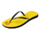 Image of three red chili peppers in sombreros made of lemon and tangerine to protects them from a hot summer sum. Red text Hola Amigo under the image. Funny flip flops to wear to the beach or other places. Yellow color of the background. Customizable. You can change the image and you can change the color of the background. Have fun!