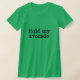 My overall review is that the T-shirt is nice, it fits true to size however the font is significantly smaller than advertised and you can't read it. The printing is unreadable and there is a strain to read it. It does not look like the advertised product. Maybe the shirt color is darker or a larger more visible font should have been used. Photos with and without flash and font is barely legible.