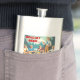 The product is a good size and came exactly as it was pictured. The lid is not attached to the flask, which could be dangerous on drunken nights... The print came out surprisingly well and looks very sharp. Would definitely recommend.