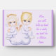 A set of angels. These angels are dressed in white with their hair in bows. Their wings are resting as the angels sit quietly on a fluffy cloud. A yellow star is shining on them. A cute little poem for mom from son or daughter. Opaques have been added for framing. Three different sizes are available. Customize with your own name.