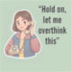 This funny overthinking quote sticker features a cute illustrated woman holding a retro telephone, paired with a relatable and sarcastic message about overthinking decisions. The soft pastel green background and friendly cartoon style give the design a cozy, humorous feel. Perfect for anyone who overthinks, loves witty quotes, or enjoys relatable humor. A fun decorative sticker for laptops, planners, notebooks, phones, or gift packaging.