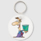 A man standing holding a box that has the word quality on it. This design looks really effective on this Keychain