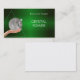 Hands holding a Picture of a Quartz Crystal Ball Healing Crystals Business Card Template. White Quartz Crystal Ball sphere image. Vibrant Photograph closeup of Large white Quartz crystal ball with and arm and hand graphic holding the ball, on a green background. Perfect for psychics, crystal stone healing, and mineral semi-precious gemstone suggestions. Photography card that you can customize color, add your text and more. Great gift idea for those that work with crystal balls, gemology, readings, and fortune tellers. If you are looking for a realistic crystal ball that you can customize, consider this design. Photography by ChrisJo, all rights reserved.