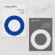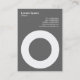 A business card template with a holed circle or 'O' symbol on the front. Company name, business type and address on the front with name, job title, telephony, web and email addresses on the back, with a similar layout on a gray background with a repeat of the front symbol in white. This card can also be further customized.