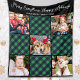 Holiday 5 Photo Collage Personalized Green Plaid Fleece Blanket