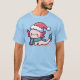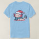 A cute image of an axolotl wearing a scarf and santa hat- all prepared for the holiday season!