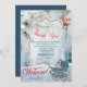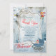 A Teal-green light blue winter snow scene background toys and a pram with the option to replace the typographic Text when it is a Boy to thank your friends with this card