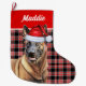 Holiday Belgian Malinois Red Plaid with Dog's Name Large Christmas Stocking