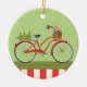A fun bicycle design all ready for the holiday season! A red bicycle with a perfect little tree, candycanes and a gift!