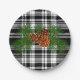 Holiday Black White Plaid with Pine cone detail Paper Plates
