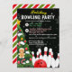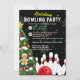 Holiday Bowling Party Xmas Tree Black Background Invitation