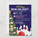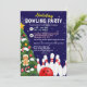 Holiday Bowling Party Xmas Tree Blue Background Invitation