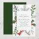 A beautiful watercolor greenery and red berry arrangement frames your invitation. The card has simple, elegant typography, and there is plenty of room to personalize.