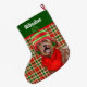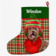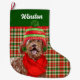 Holiday Brown Labradoodle Plaid and Dog's Name Large Christmas Stocking
