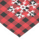 This table runner is shown in a lovely black and red buffalo plaid with snowflakes print.